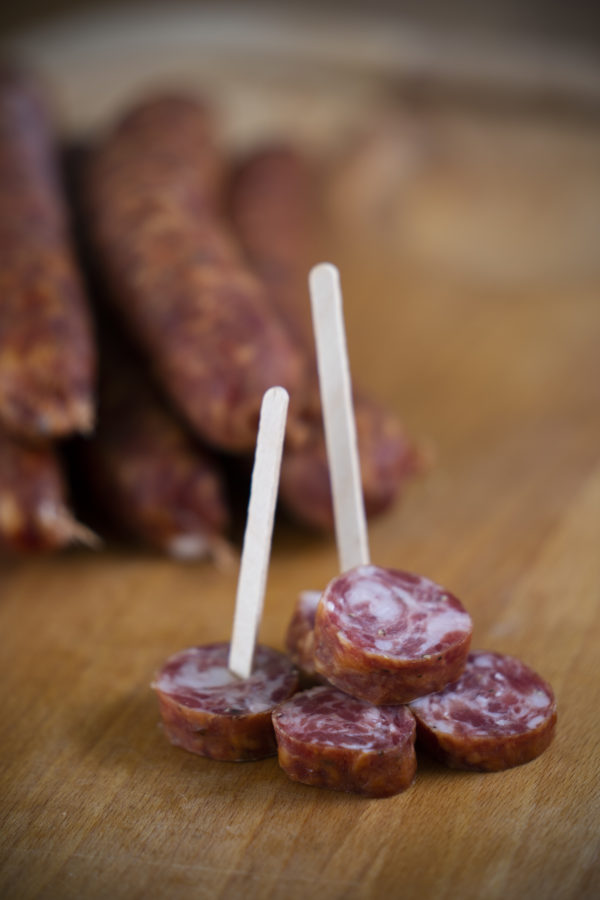 Saucisse séchée porc/bœuf, fumage traditionnel (chêne/hêtre)